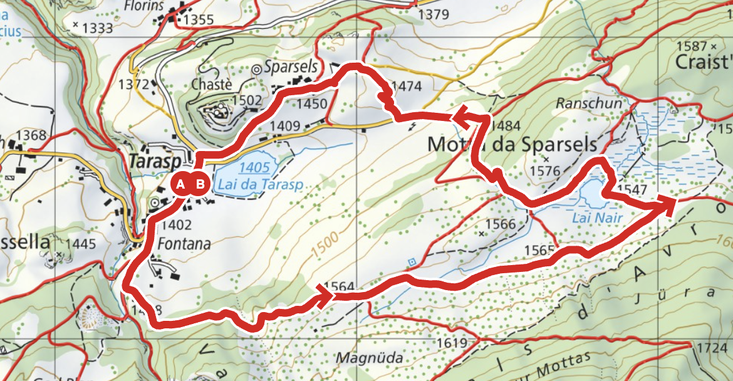 Den See erreichst du von Tarasp aus mit einer schönen Rundwanderung, jetzt im Herbst auch teilweise durch Lärchenwälder. Und das Schloss Tarasp ist auch ein Highlight. Habe hier noch den kleinen Umweg über den Mot de la Crusch (Kreuzberg) drin. Da gibt‘s super Blicke ins Unterengadin.